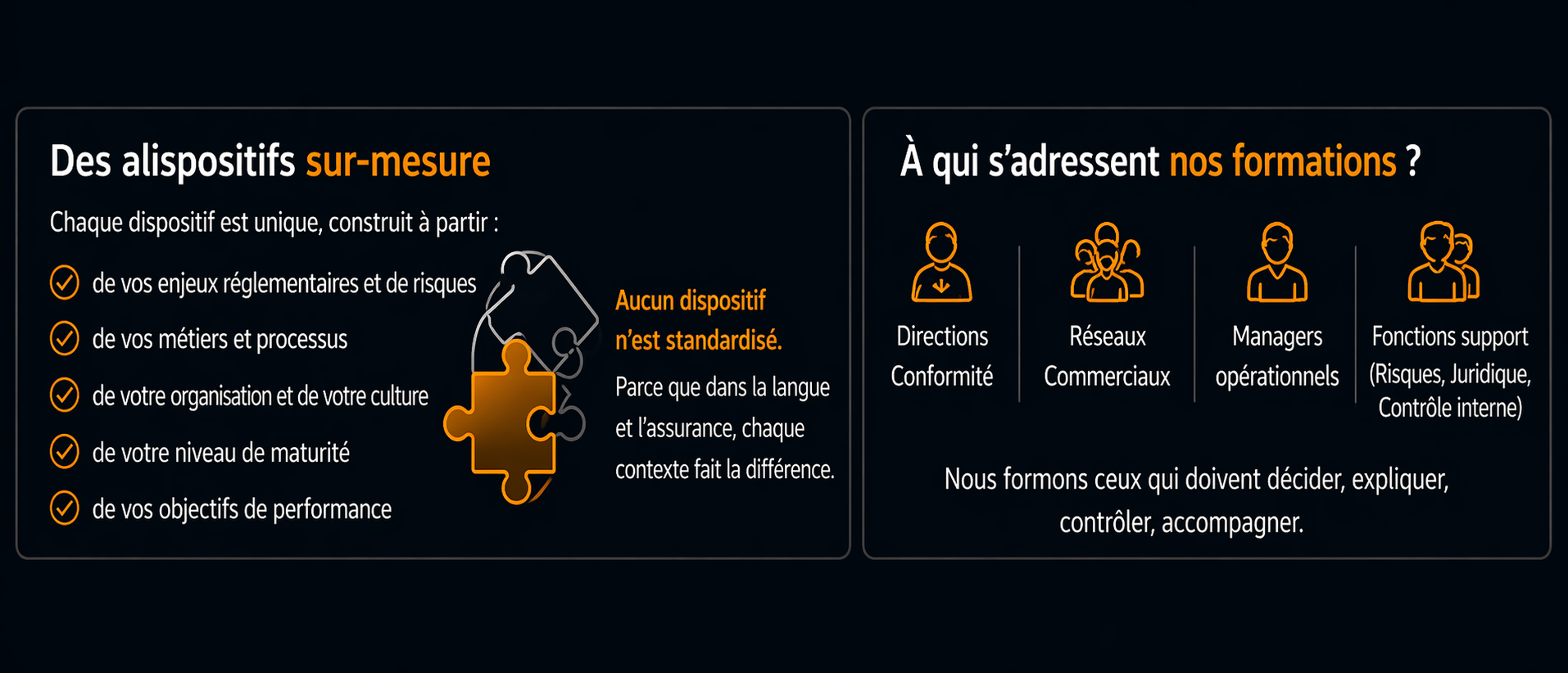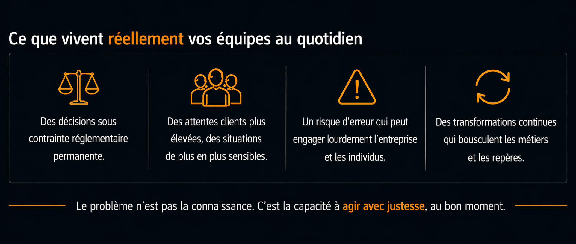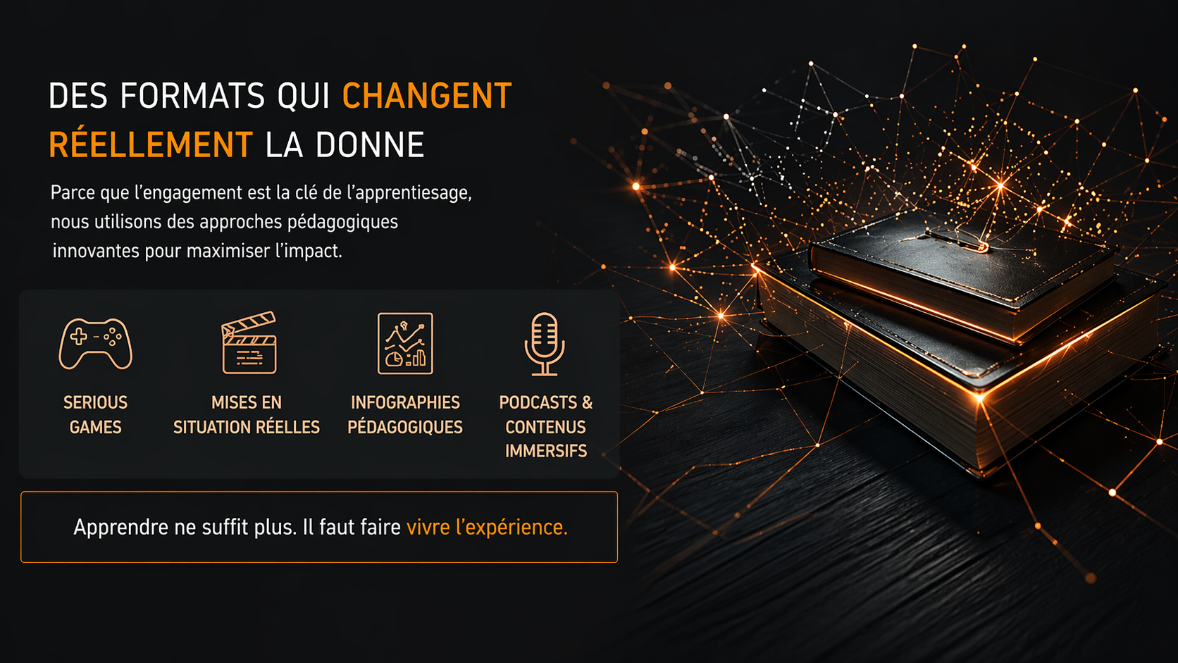 Nous concevons des dispositifs pédagogiques qui répondent directement aux réalités opérationnelles de vos équipes.